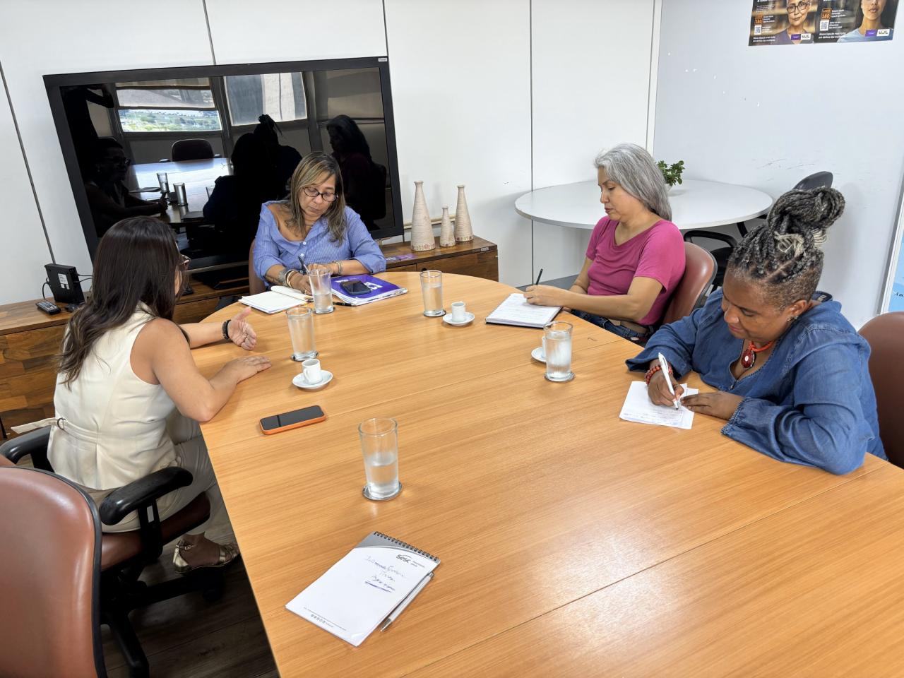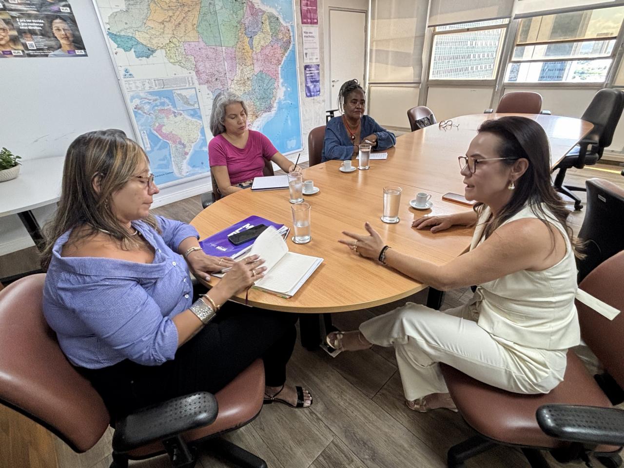 Pelo Ministério das Mulheres, também participaram a assessora parlamentar e de Assuntos Federativos Eclesina Alaba e a coordenadora de projetos Fabiola Ferreira Acampo.