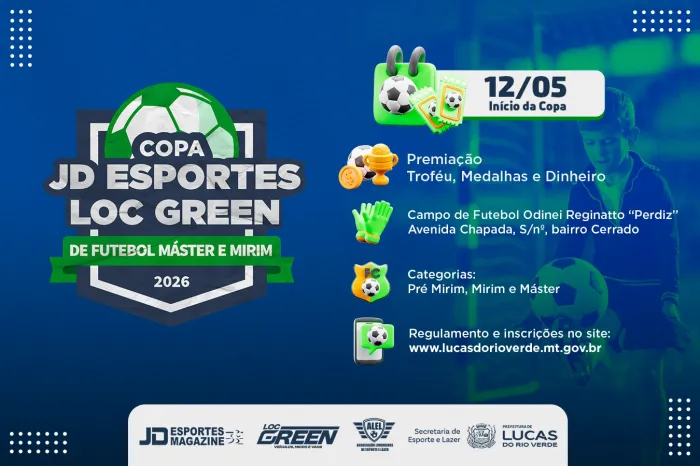 Inscrições abertas para a Copa Municipal JD Esporte / Loc Green de Futebol Máster e Mirim 2026